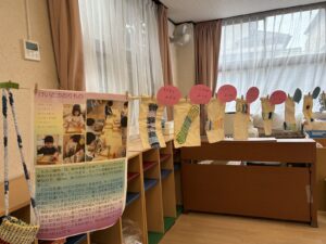 2月の後半から毎日こつこつ制作に取り組んできました。すみれ、れんげはモザイクアートのランプシェードと毛糸の織物です。たんぽぽ、つぼみは瓶に紙粘土を貼り付けて色付けした瓶人形です。どれも小さな手で一生懸命作り上げた素敵な作品でした。