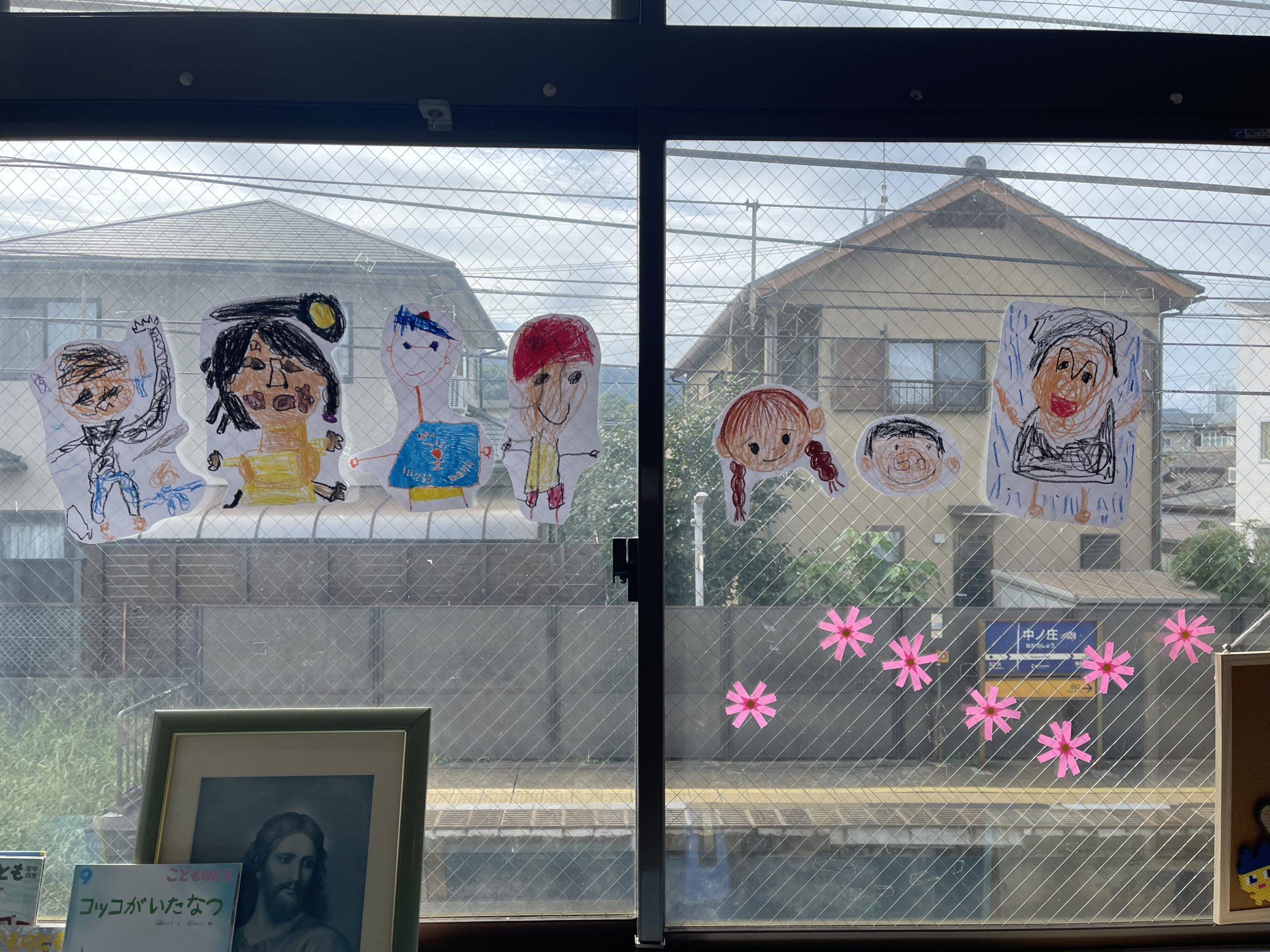 今日は自分の絵を描きました。これをうんどう会の入場門のアーチに飾ります。よく見るとどれが誰かきっとわかりますよ。よく似ていますからね。