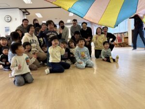 山田先生の体操あそびに親子で参加しました。お父さんやお母さんと息を合わせてのクレーンゲームやバルーン。あっという間の1時間でした。